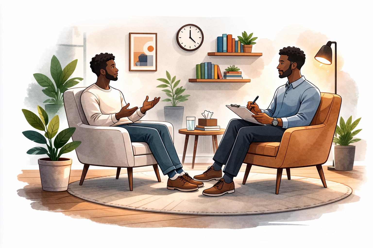 Sit down with a licensed therapist in a safe, supportive environment. Share your experiences, goals, and concerns, and receive guidance tailored to you.